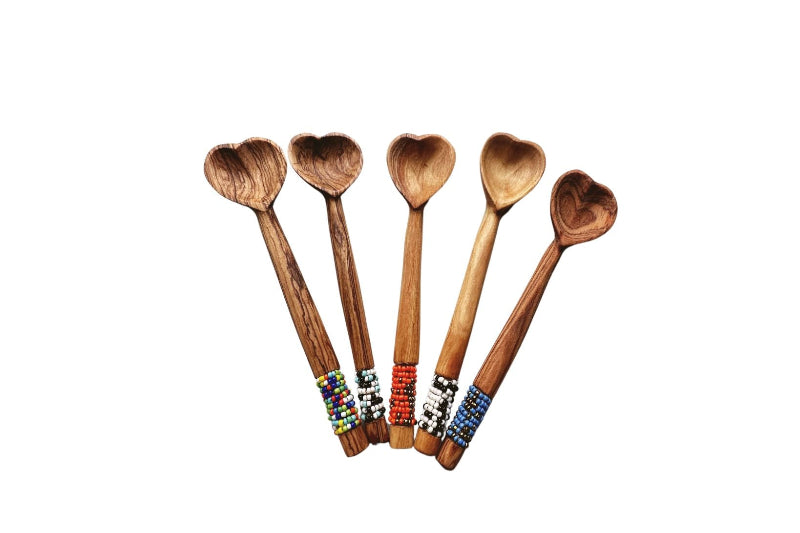 These wooden tea spoons are hand-carved in Kenya using olive wood with a beaded handle. Adds texture and detail, elevating the overall look and feel.